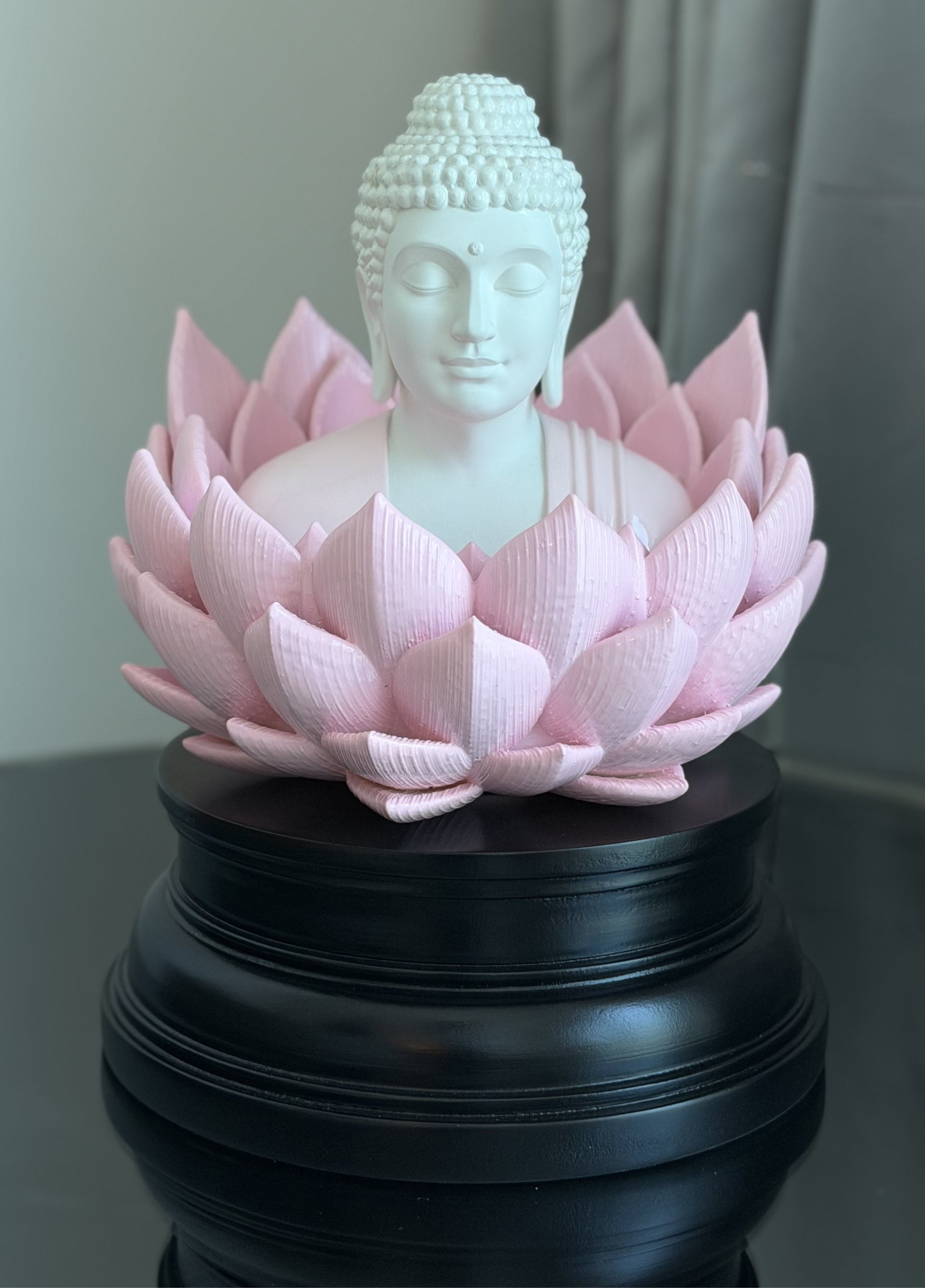 This sculpture captures a moment of quiet enlightenment, where the mind rests and the spirit awakens. Buddha’s tranquil expression and poised posture speak of compassion, balance, and a deep understanding that transcends the noise of the world. The smooth, porcelain like finish enhances the elegance of the form, letting the softness of the petals and the calm of the figure shine through.