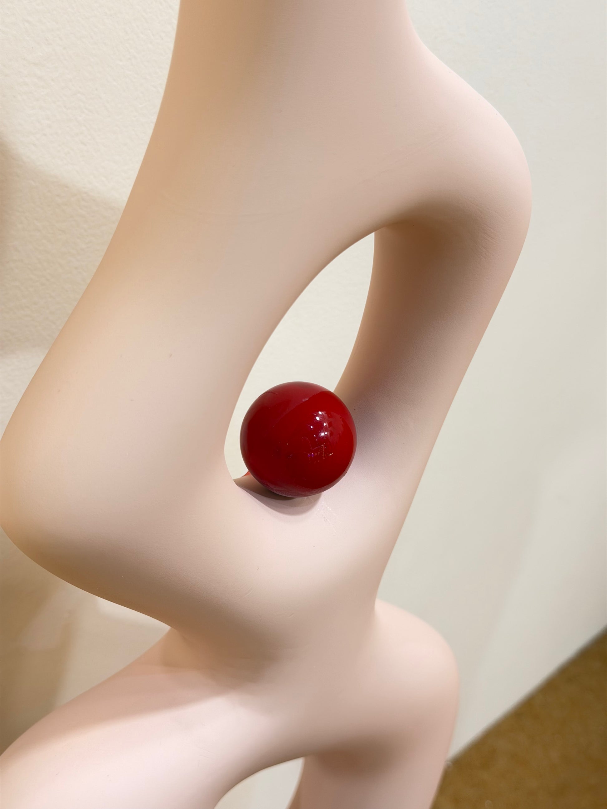 At her center glows a single red sphere, her heart. It burns softly, not with noise but with quiet passion. It is the symbol of her warmth, her resilience, and the love she carries within, held gently yet with unshakable strength.
